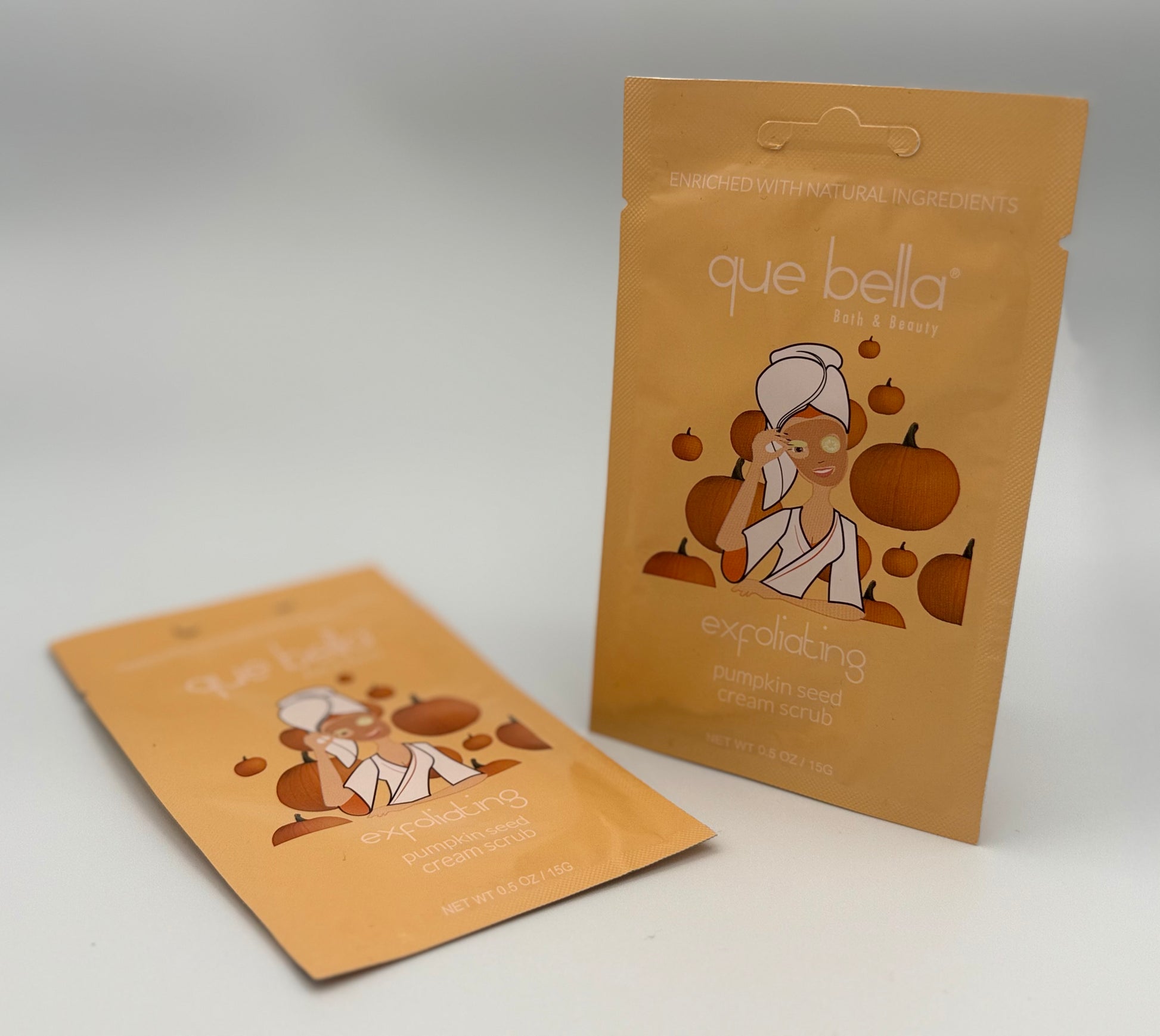 This que bella Pumpkin seed scrub is a delicious treat for your skin enriched with pumpkin seed extract which helps to soften and brighten the appearance of the skin. The cherry stone particles help to gently exfoliate dull skin cells resulting in a more radiant looking complexion.